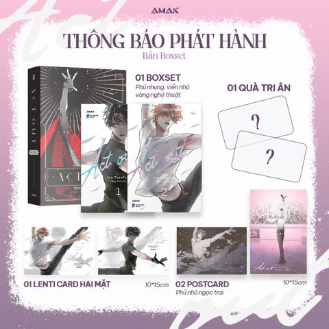 - Phiên bản boxset hở gáy bao gồm 2 tập sách cùng quà bên trong, ngoài ra tặng kèm thêm 01 Lenti Card hai mặt và một set quà tri ân độc giả dịp Tết 2024. Mặt ngoài boxset được phủ nhung cùng viền nhũ vàng rực rỡ, vừa sang trọng vừa tăng thêm giá trị nghệ thuật cho boxset.