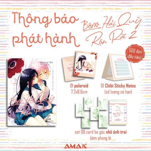 - Sách chỉ có một phiên bản, bao gồm set 06 card bo góc hologram kèm phong bì và 01 polaroid 7.2x8.6cm. Dành cho 500 đơn hàng đầu tiên, tặng thêm 01 Chibi Sticky Notes để bàn đáng yêu.