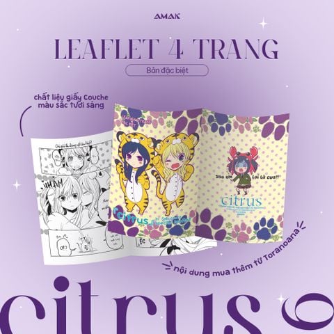 - Bản đặc biệt: 01 Postcard hai mặt, 01 Leaflet 4 trang (với hình ảnh & nội dung mua thêm từ chuỗi cửa hàng Toranoana), 01 Card bo góc phủ Hologram rực rỡ (art bản quyền mới, vốn dùng cho bản đặc biệt Citrus 6 tại Nhật), 01 Card Holder kèm dây đeo xinh xắn, và 01 poster A3. Giá bìa: 238.000vnd