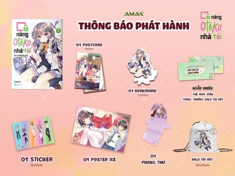 - Bản thường: 1 bookmark, 1 Postcard. Ngoài ra có tặng kèm phong bì thư otaku và sticker cho 1000 đơn hàng đầu tiên. Giá bìa 126.000đ