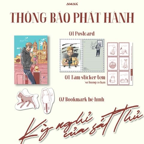 - Quà tặng kèm: Sách chỉ có một phiên bản gồm 02 bookmark bế hình, 01 postcard hai mặt và 01 tấm sticker tem bế hình (số lượng có hạn).