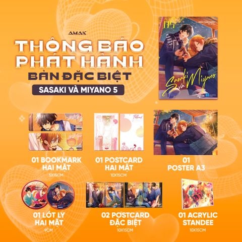 - Bản đặc biệt: 1 Bookmark, 1 Postcard bản thường, 2 Postcard đặc biệt, 1 lót ly, 1 poster A3, 1 khung tranh acrylic 10x15cm, tem chính hãng độc quyền Kadokawa. Giá bìa: 188.000đ