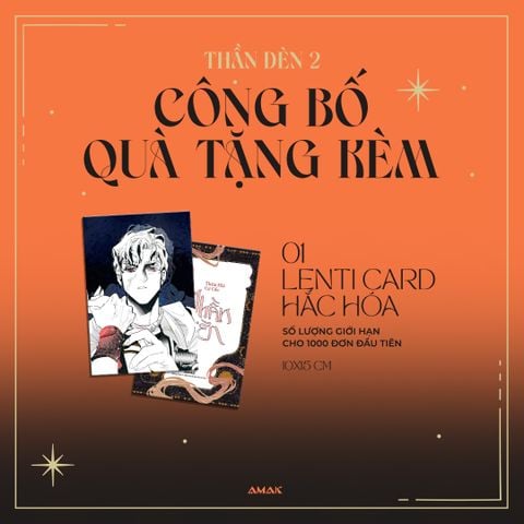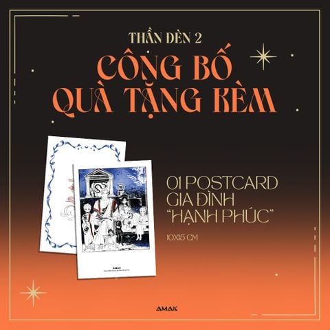- Quà tặng kèm: Bao gồm bộ bìa 2 lớp độc đáo, cán màng nhung mịn, phần tên truyện phủ nhũ sần huyền bí; 01 Postcard Gia Đình “Hạnh Phúc” 10x15cm, ngoài ra tặng thêm 01 Lenticard Hắc Hóa (số lượng có hạn, dành cho 1000 đơn hàng đầu tiên).