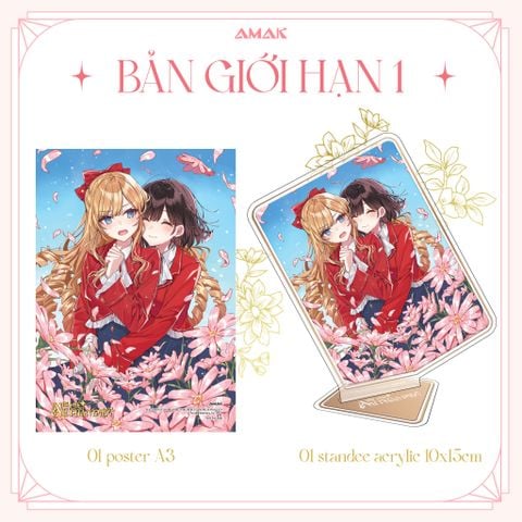 - Bản giới hạn version 1: 01 bookmark hai mặt, bộ 10 postcard, 01 lót ly giấy (~10cm), tặng thêm 01 bìa áo hình gốc bản Nhật, 1 standee Acrylic theo hình tác giả vẽ riêng thị trường Việt Nam (10x15cm) ,1 poster A3 (cùng hình standee) . Giá bìa 319.000đ